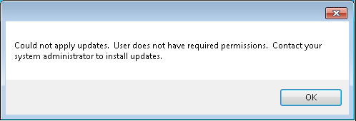 A message is displayed in case the user does not have appropriate permissions to apply updates. Click OK.